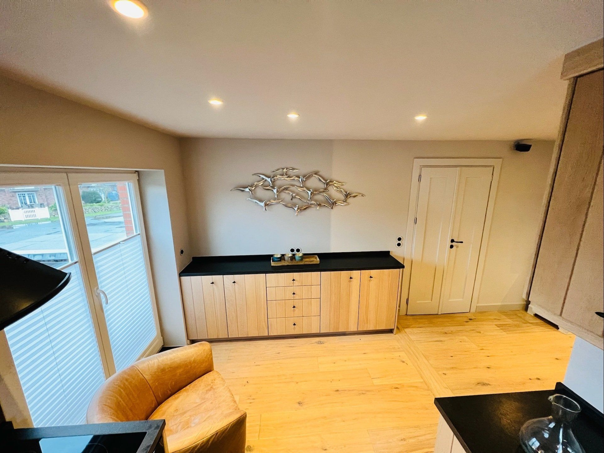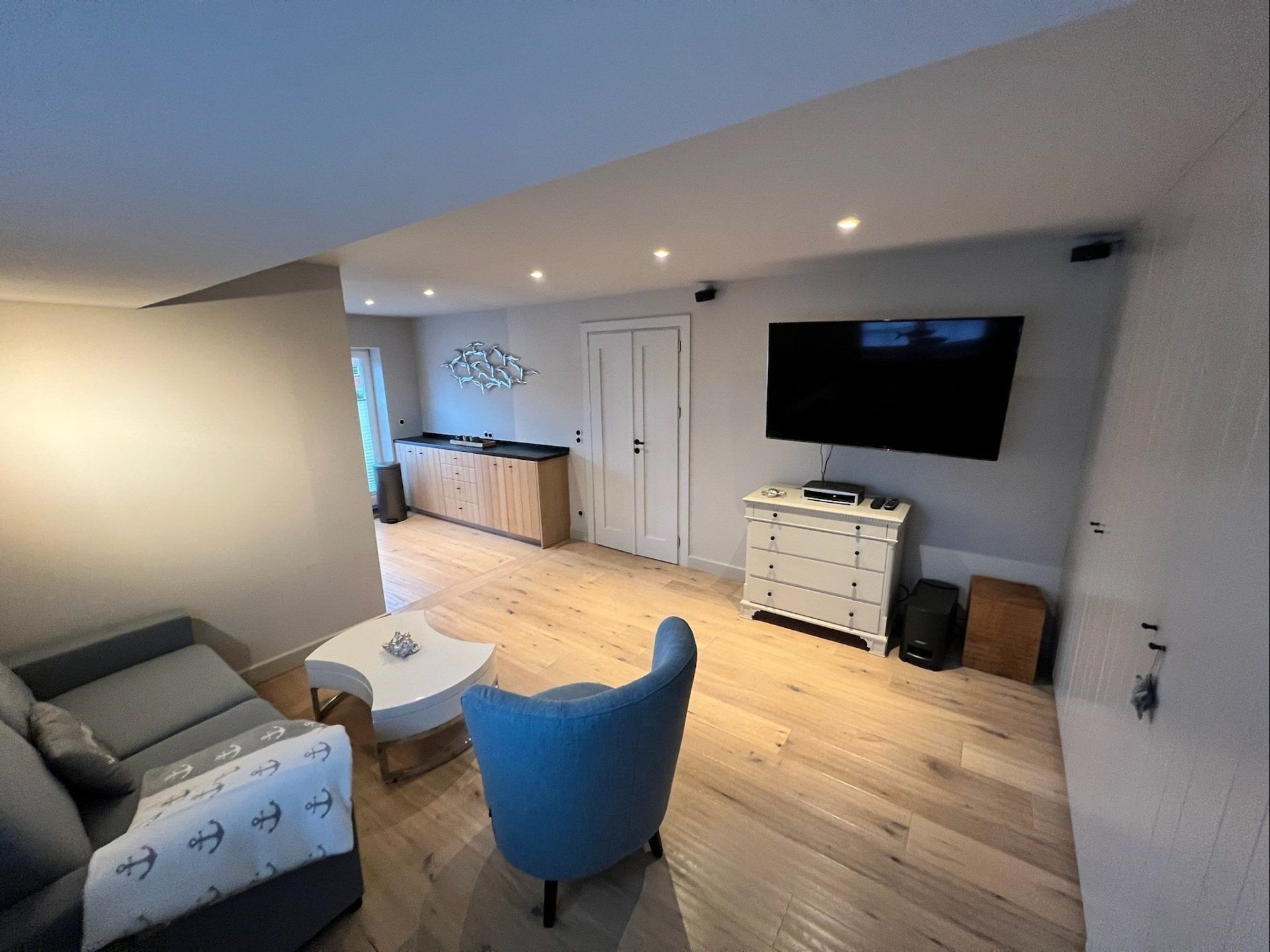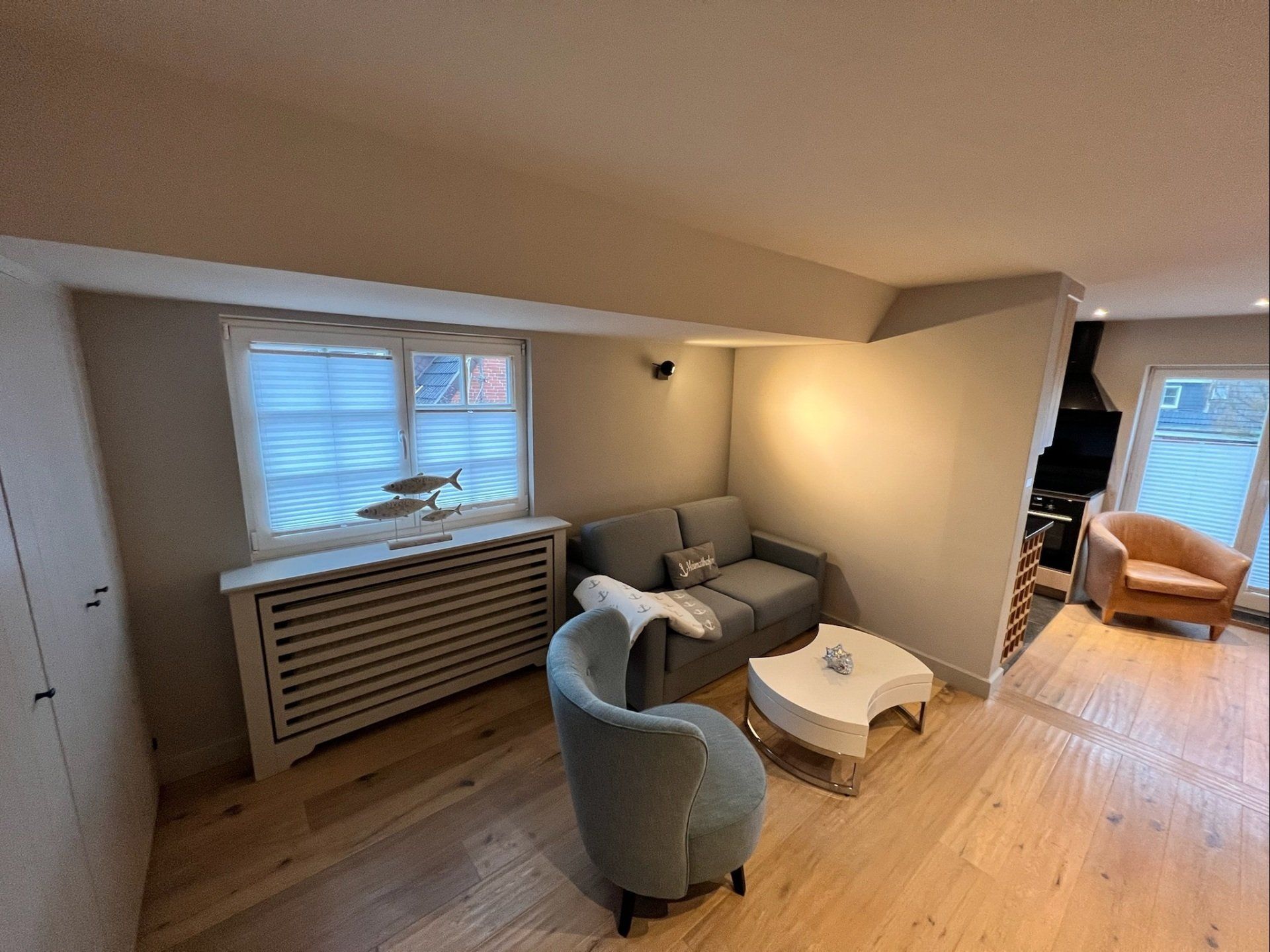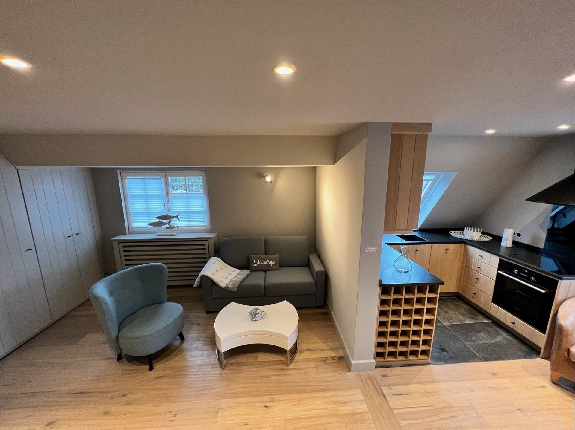Das Wohnzimmer hat eine ausziehbare Schlafcouch
